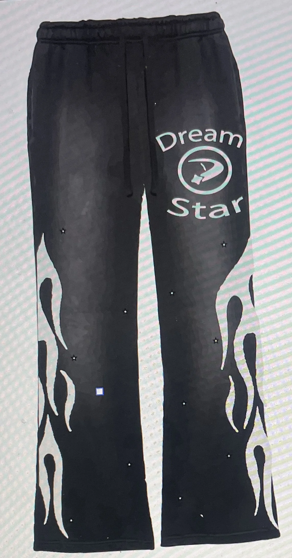 Rough draft of Kyren’s “Flare Pants” inspired by designer brand “Hellstar”